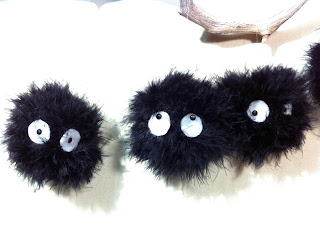 Well I did it! I finally made a Dark Moogle and he will be for sale at Rivet Gallery's 'Plush You!' show this weekend. All the artists were asked to submit 2 pieces and to keep them fairly priced in the interest of the economy and the holiday season. Well, I knew I wanted to make a black Moogle but it took me a while to decide on what the other piece should be. I wanted to do something that would fit with the moogle but due to all the house hunting and traveling in Novmember I didn't really have time for another large piece. I decided the soot sprites from Spirited Away would be a cute and accessible gift that people could use as charms or ornaments. I can't wait to see what the show looks like all put together and I hope it goes well. Next up, an interesting custom sculpt and some leather coin purses I have been working on.